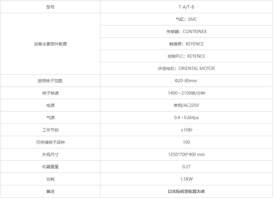 適用范圍廣、可支持加重或去重且測(cè)試完畢后能自動(dòng)定位、支持快速換型,換型方便,簡(jiǎn)便,操作工通過短時(shí)間培訓(xùn)即可操作、測(cè)試時(shí)間只要3~7秒、可存儲(chǔ)轉(zhuǎn)子品種100多種,軟支撐高精度測(cè)量系統(tǒng),測(cè)量數(shù)據(jù)精度高重復(fù)性好,全自主知識(shí)產(chǎn)權(quán),特殊產(chǎn)品可支持高度定制化方案解決。